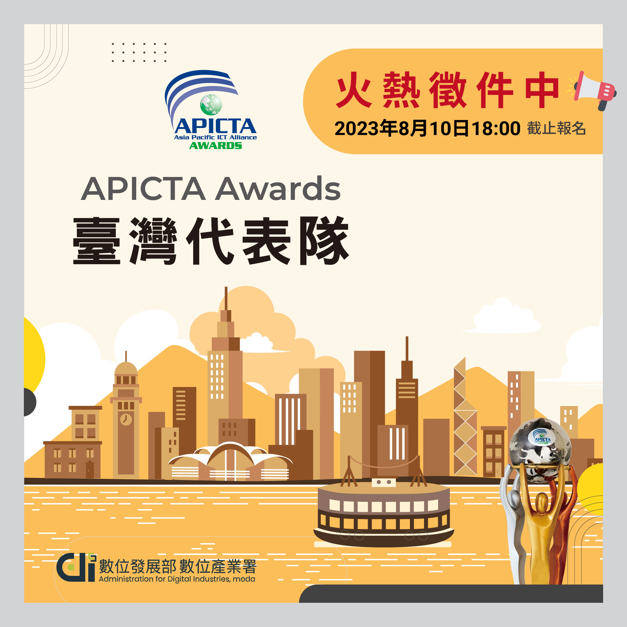 為積極協助臺灣數位人才躍升國際舞台,並將臺灣廠商具市場價值的數位解決方案輸出至海外市場,爭取落地合作的機會,數位產業署透過亞太地區最具指標性與影響力的資通訊競賽「APICTA Awards亞太資通訊科技聯盟大賽」,經由國內選拔及培訓機制,每年選出臺灣代表隊參與國際盛事,直接對亞太市場展示臺灣廠商在數位轉型的創新解決方案,也為參賽團隊開啟了前進國際市場與創新應用服務商機的大門,成功把臺灣帶到世界,也把世界帶進臺灣!