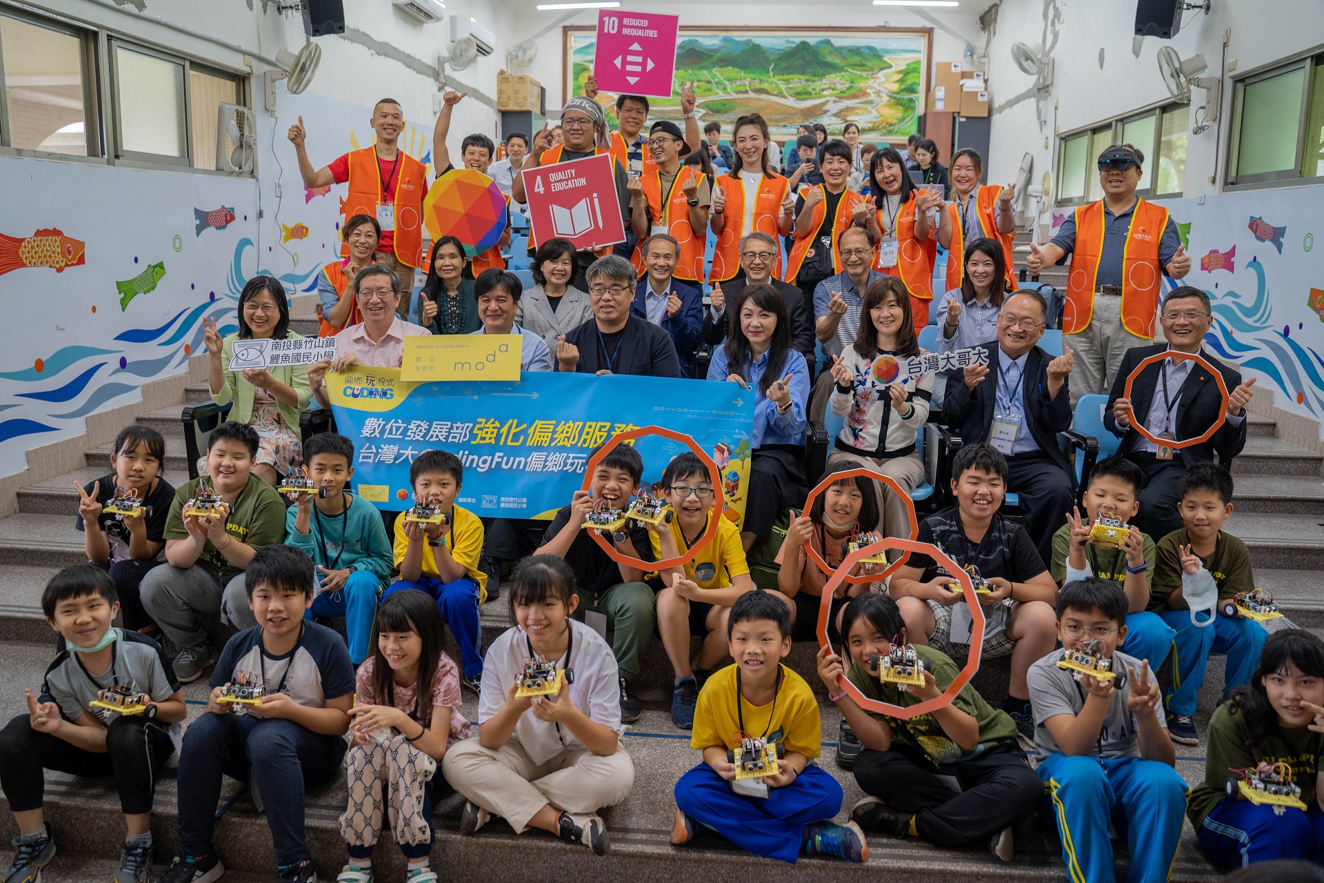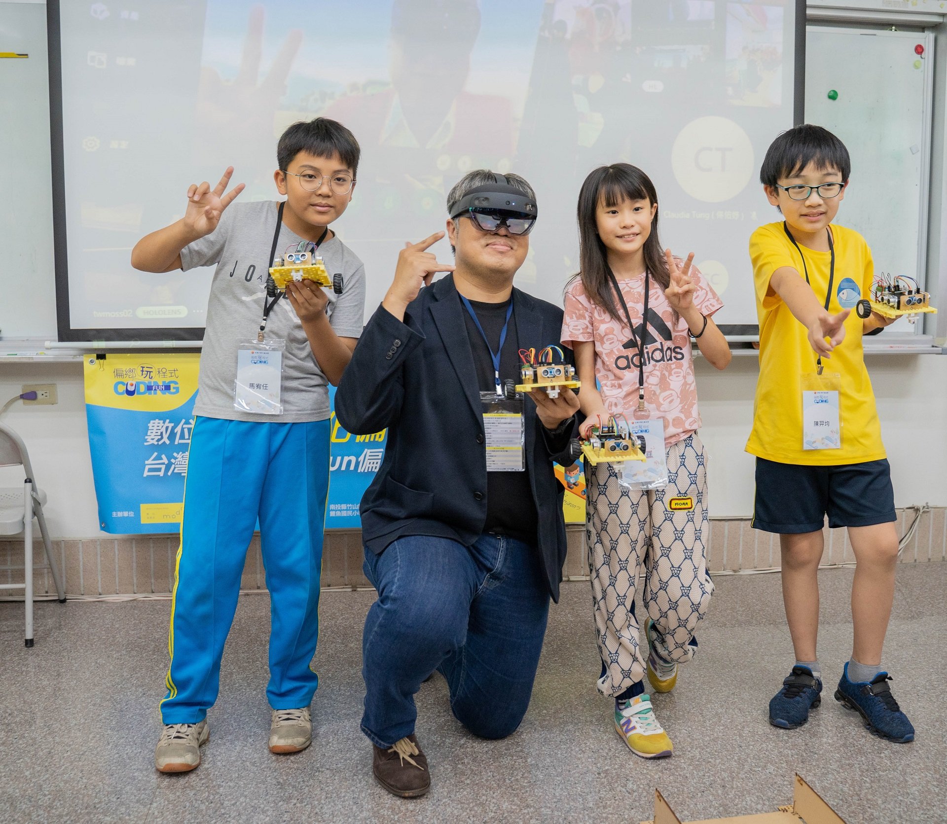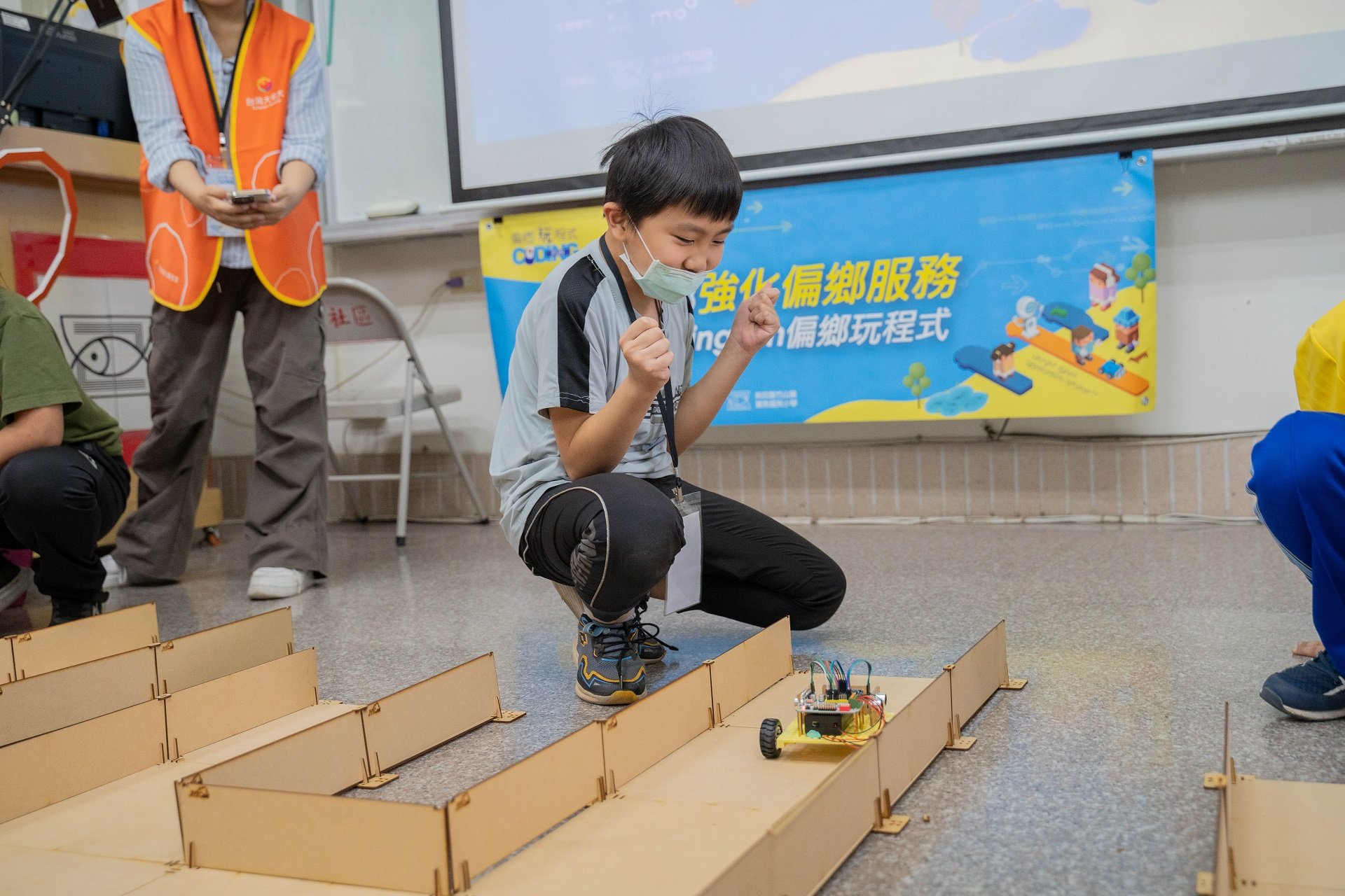 自2017年起啟動的「Coding Fun 偏鄉玩程式」計畫,今(2023)年首次導入5G先進通訊技術的教學載具,運用5G行動網路大頻寬及低延遲之特性,搭配混合實境(MR)技術,帶領學生從遊戲中學習,不僅培養程式邏輯思考能力,更藉由實際接觸創新科技,提升學生學習興趣。