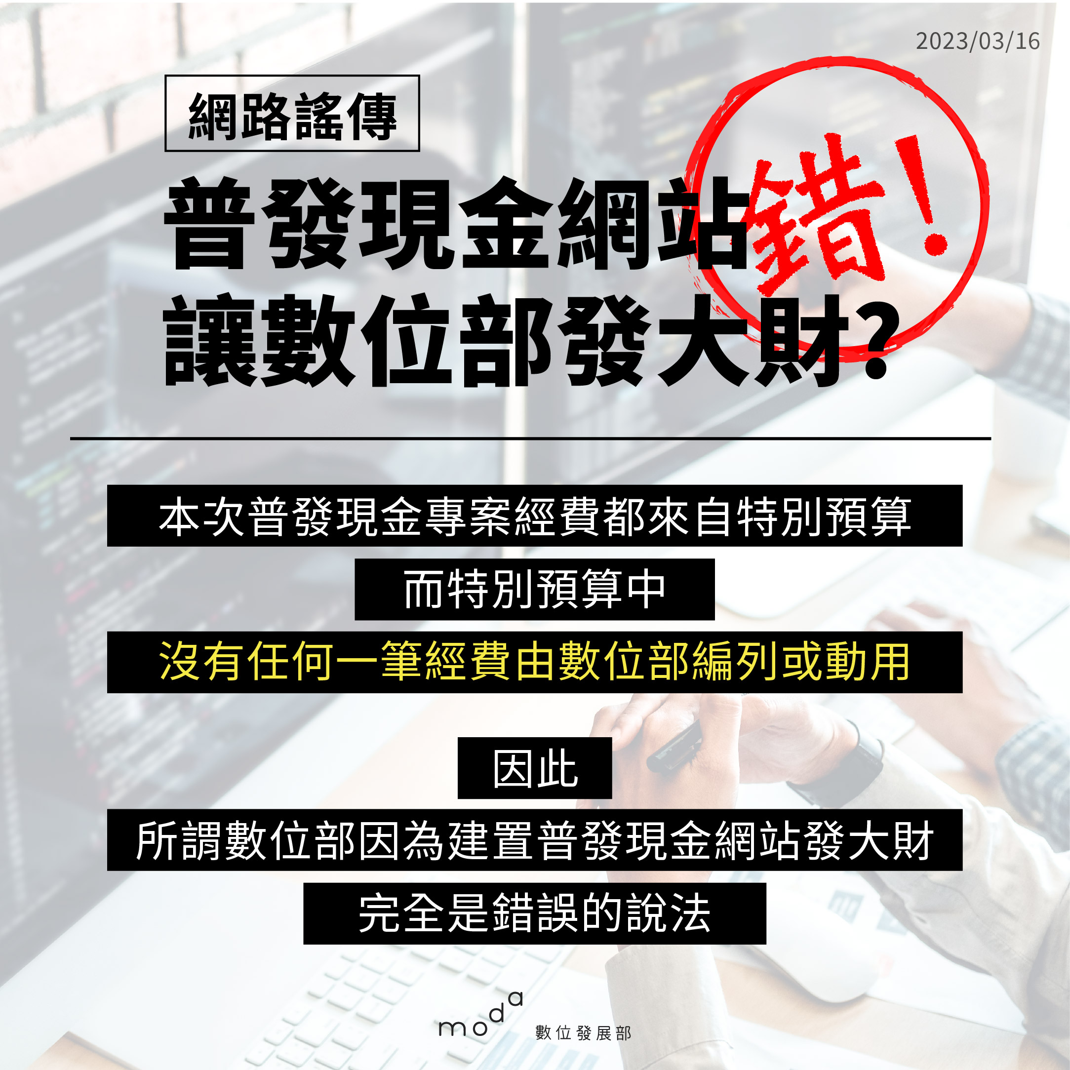 但何時開放登記或領現,需配合立法院審議特別預算期程,以及行政院與本案主辦機關財政部的規劃。再強調一次,網傳的申領日期都是不正確資訊。
