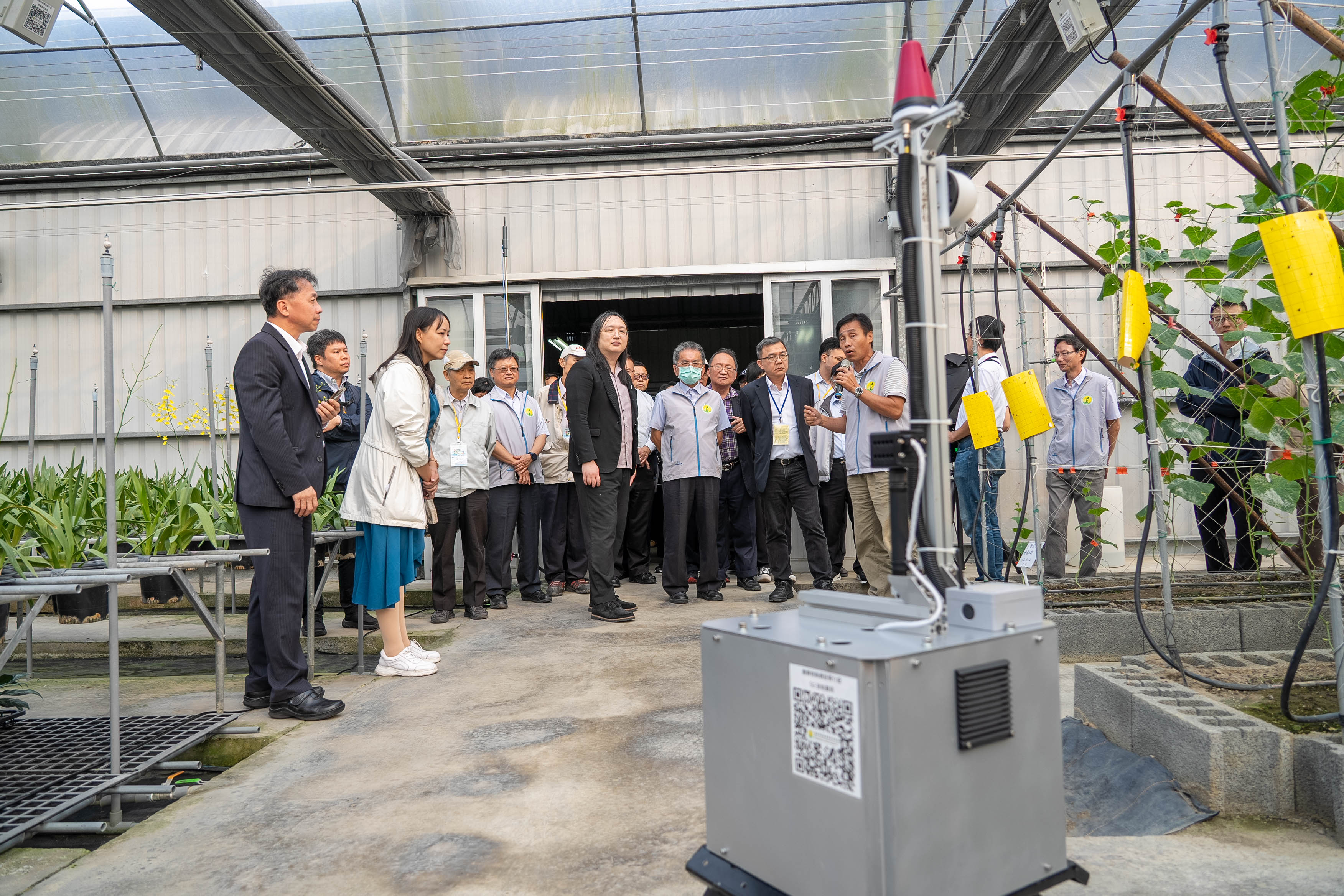 隨後,唐部長及訪團一行人前往屏東長治鄉的農業部高雄區農業改良場,實地了解物聯網應用於文心蘭肥灌及智慧載具的執行情形,並就科技如何融入傳統產業,促進數位轉型、創造出更多數位應用商機等議題交換心得。
